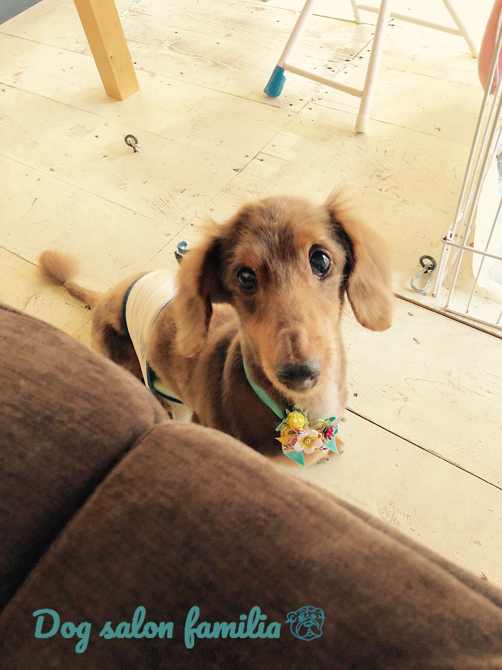 帰りの準備中は、隣でちょこりん♪おりこーさんにお迎えを待つぱふちゃんでした(*´ω`pq♡